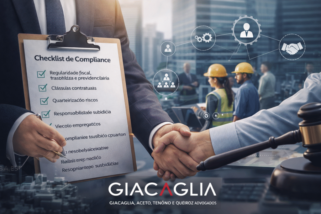 Para reduzir riscos, o empresário deve implementar um checklist de compliance específico para terceirização, que inclua: